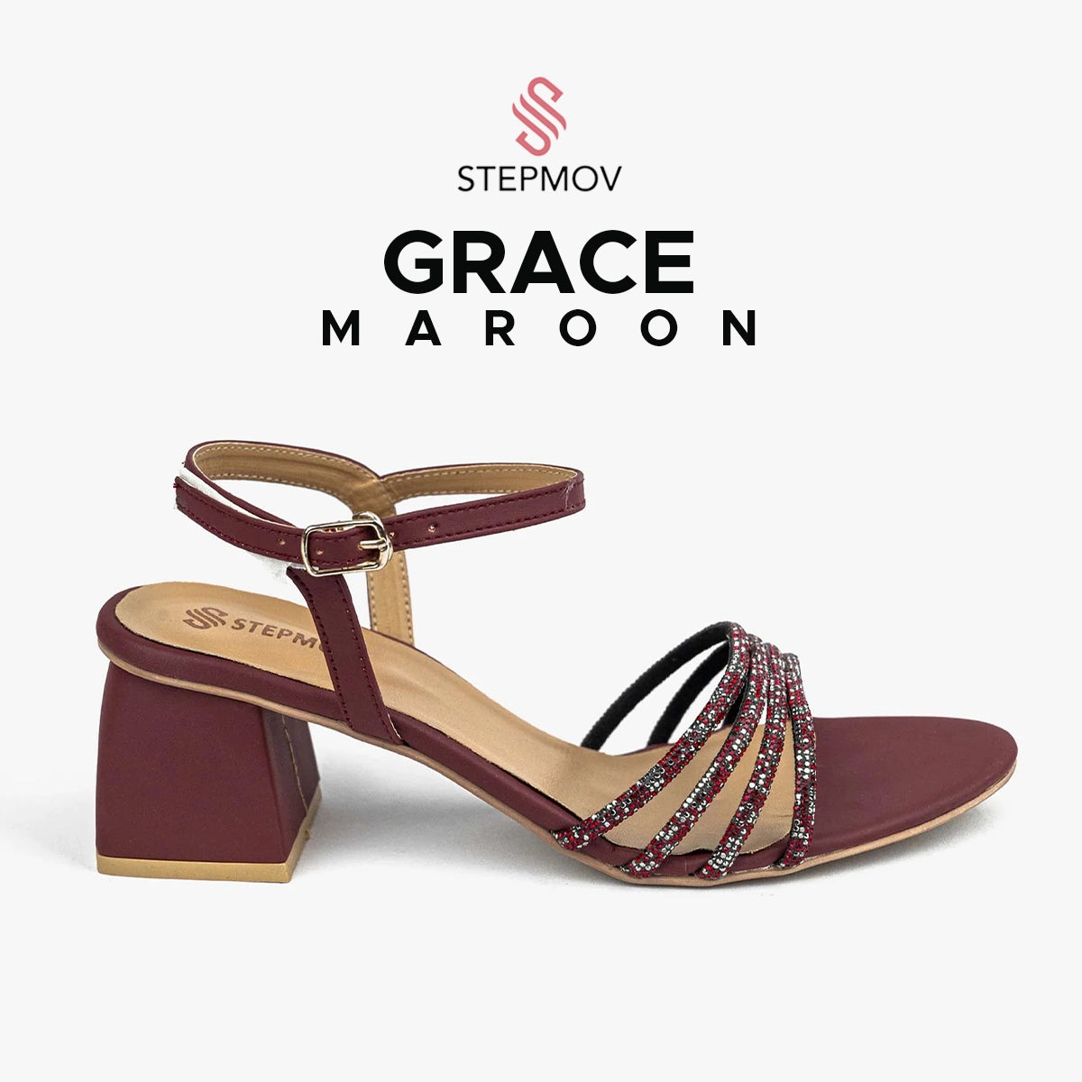 Introducing Grace Maroon, the perfect blend of style and comfort. Featuring a maroon upper with premium mesh chains, a high quality Rexene insole for ultimate comfort, and a non-slip sheet sole for added safety. With a 2.5 inch block heel, these shoes are both fashionable and functional. Elevate your look with Grace Maroon.